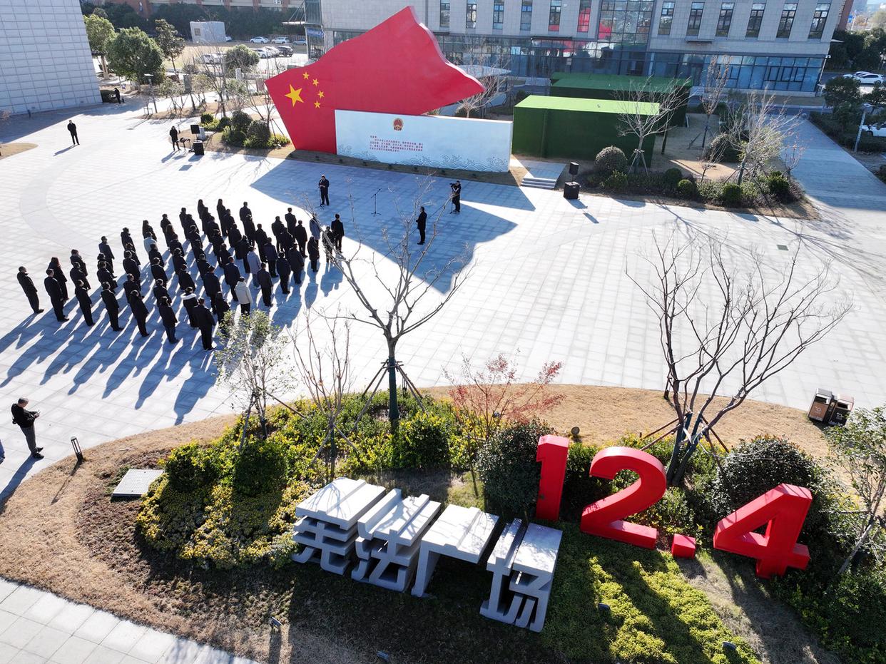 12月3日,江苏省连云港市连云区司法局组织司法人员在连云区宪法广场开展“12·4”宪法宣誓暨法律宣传活动。(工人日报通讯员 王春 摄)