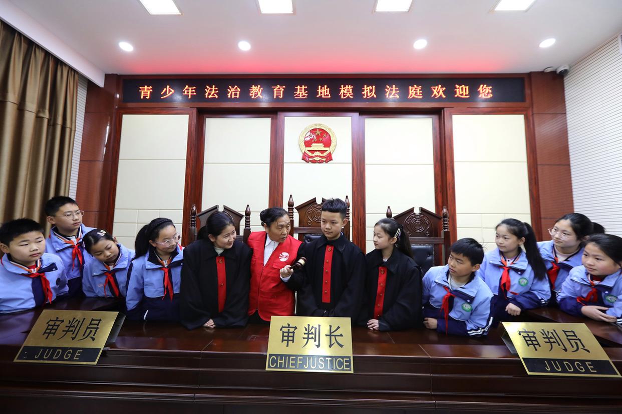 12月2日,孩子们在学习宪法知识、体验“模拟法庭”,“沉浸式”感知法律的神圣与威严,在潜移默化中接受法治教育,争做一个学法、懂法、守法的新时代好公民。(工人日报通讯员 李海涛 摄)
