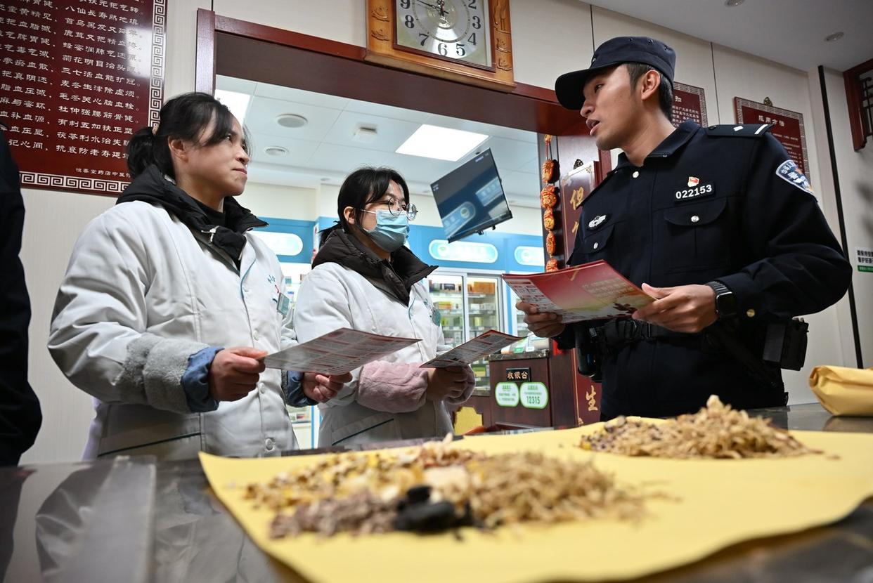 12月4日,安徽省当涂县公安局姑孰派出所民警走街串巷开展法治宣传活动。(工人日报通讯员 卫学超 摄)