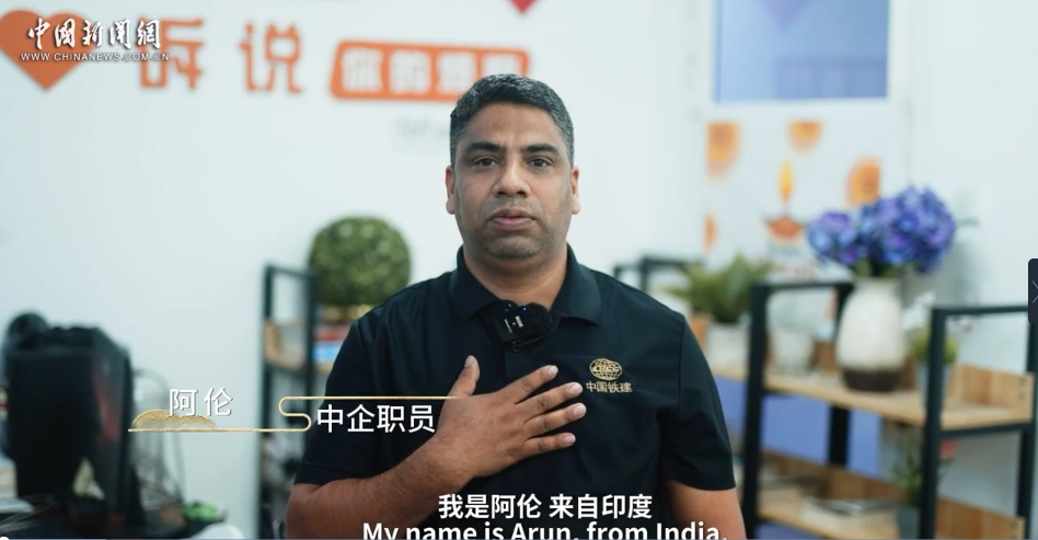 在中国企业工作的阿伦来自印度,2012年来中国留学。在接触中国的十几年里,他体验过中国高铁,做过中文导游,最后选择到中国建筑企业工作。在他看来,中国式现代化是深圳速度,高铁效率,是洒红节上的欢笑,是项目部里不同肤色同事的午餐时光。