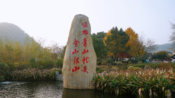矗立在余村的“绿水青山就是金山银山”石碑 (摄影:刘婷)