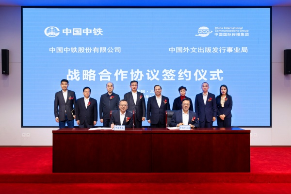12月11日,中国外文局(中国国际传播集团)与中国中铁集团在北京签署战略合作协议,双方将围绕联合打造国际传播精品、共建国际传播平台、增强国际传播能力建设等开展深入全面的合作。