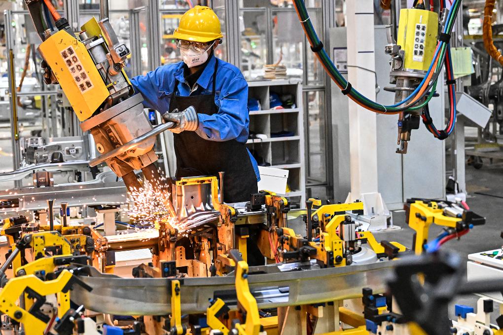 12月12日,在河南省商丘市豫商经济技术开发区一家新能源汽车企业,工人在新能源轻卡车生产线上赶制产品订单。新华社发(李恒摄)