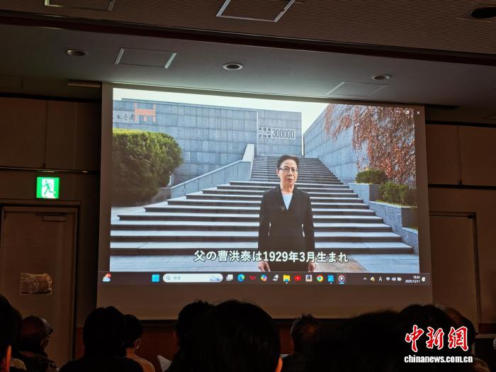 12月11日,在日本东京举办的南京大屠杀证言集会上,南京大屠杀幸存者后代曹玉莉以视频方式提供证言。中新网记者 朱晨曦 摄