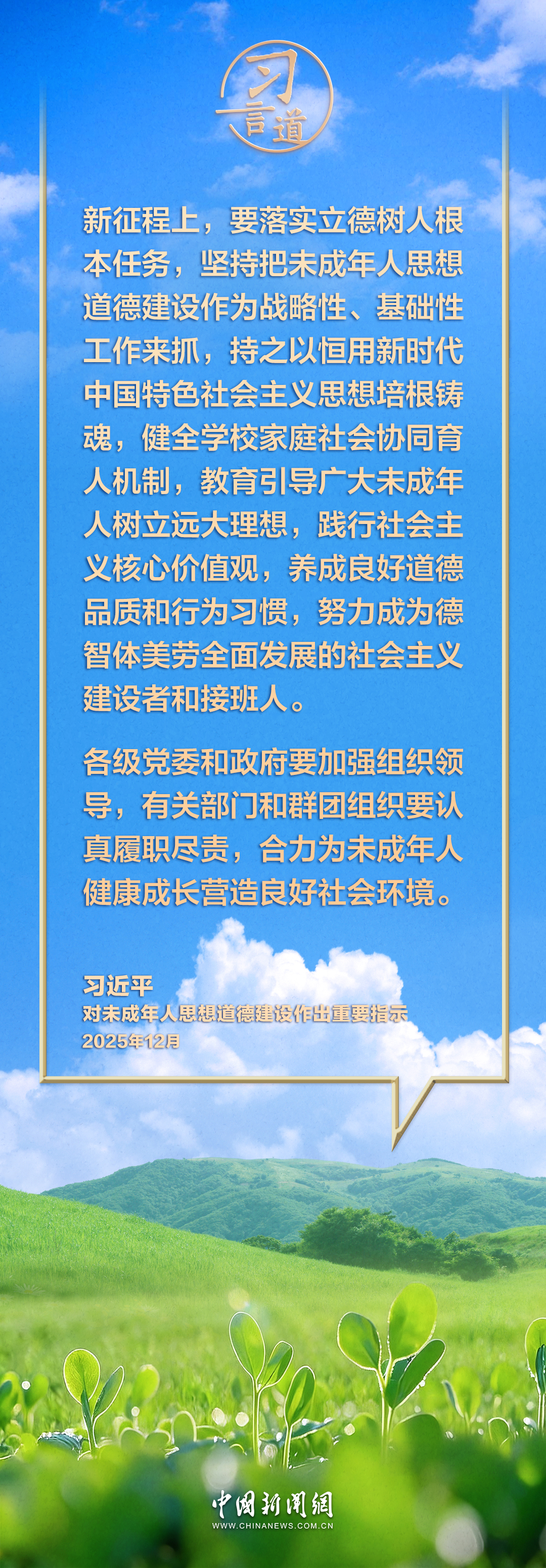 中共中央总书记、国家主席、中央军委主席习近平近日对未成年人思想道德建设作出重要指示。习近平指出——