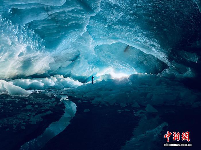本项研究于2025年10月拍摄的一处冰川前缘冰洞内影像(图片来自Lander Van Tricht)。施普林格·自然 供图