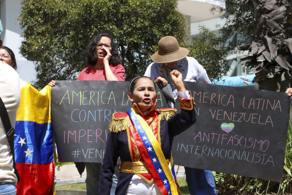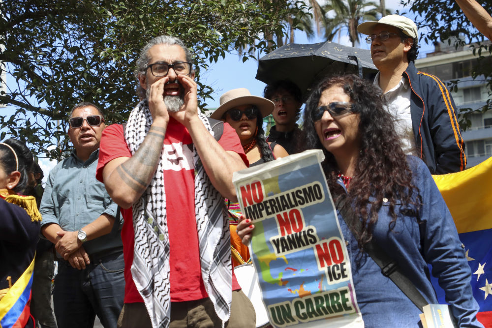 1月3日,在厄瓜多尔首都基多,民众抗议美国在加勒比地区的帝国主义行径。