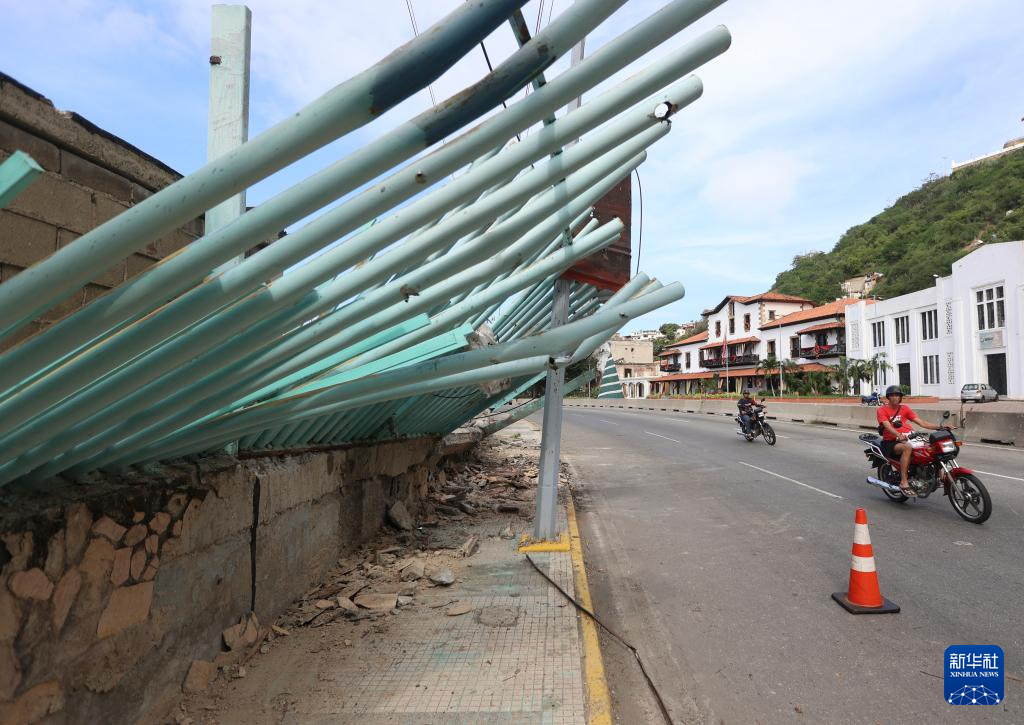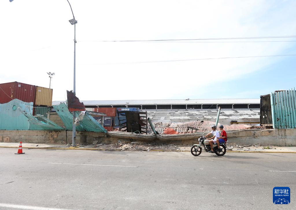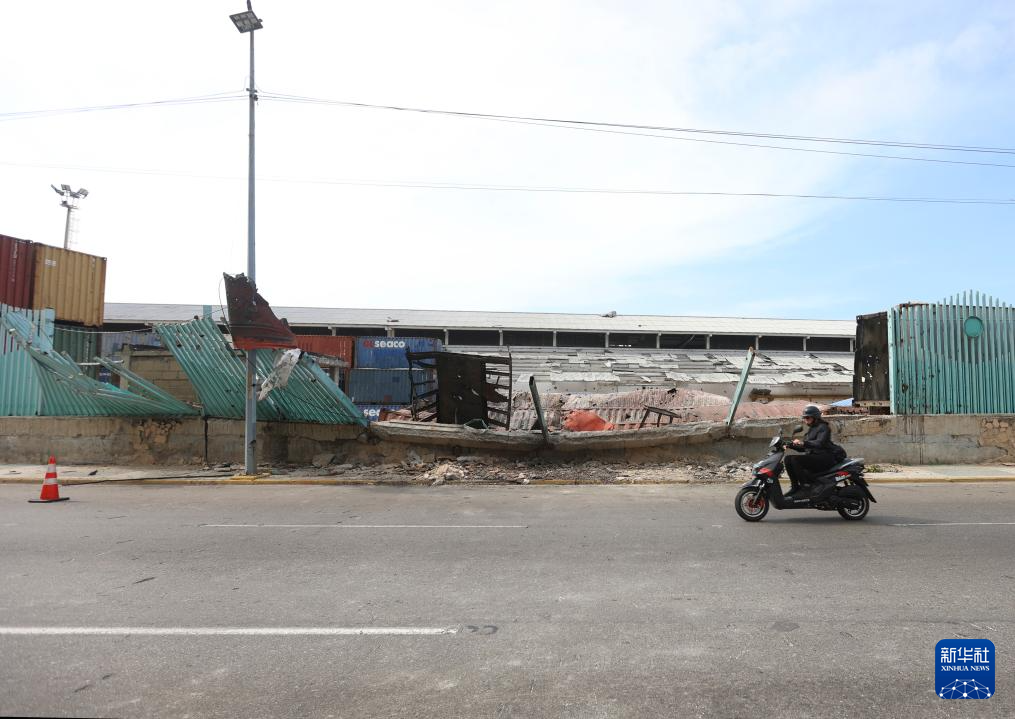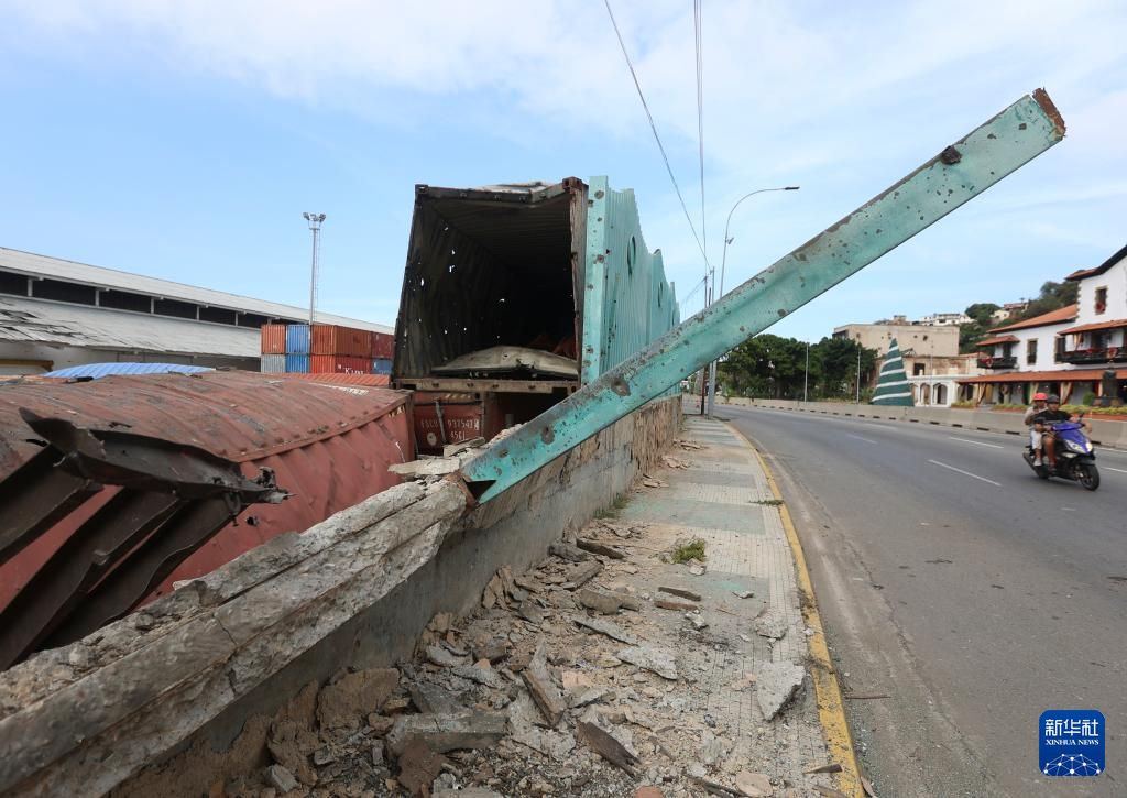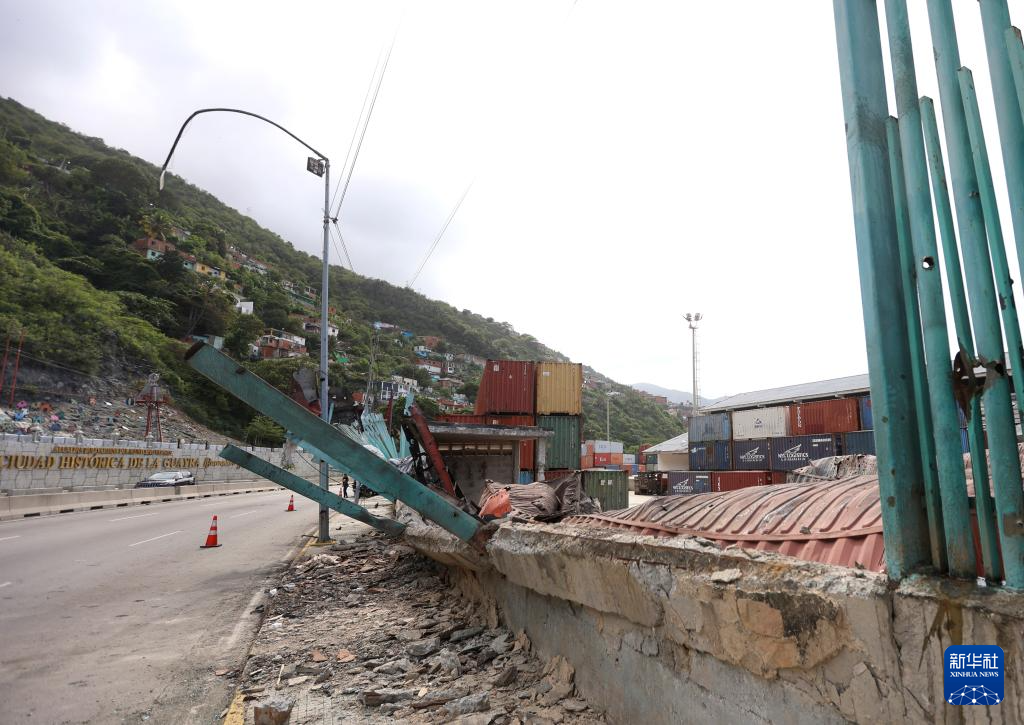 这是1月3日在委内瑞拉拉瓜伊拉港拍摄的空袭造成的建筑残骸。