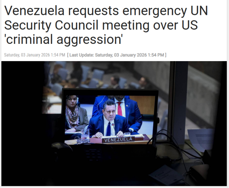 当地时间1月3日,委内瑞拉常驻联合国代表团致函安理会轮值主席、索马里常驻联合国代表阿布卡尔·达希尔·奥斯曼,强烈谴责美国“残暴、无理且单方面”武装侵略,并提出召开紧急会议等四项要求。