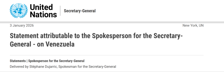 联合国秘书长古特雷斯通过发言人表示,他对近期委内瑞拉局势升级深表忧虑,特别是美国在委内瑞拉采取的军事行动,可能会给整个地区造成令人担忧的影响。他表示,这一事态发展构成了危险的先例,强调各方都必须充分尊重国际法与《联合国宪章》。