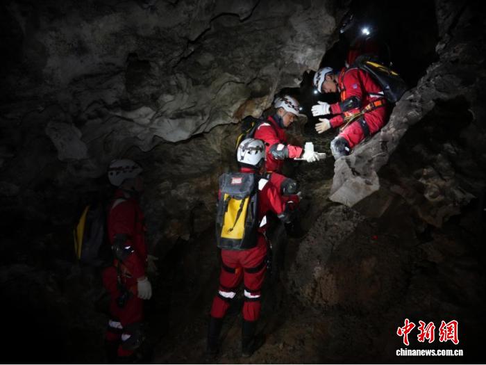 2025年12月,中国航天员在洞穴训练中开展团队协作训练。(中国航天员科研训练中心供图)