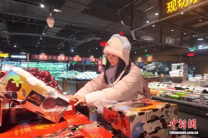 1月6日,市民在合肥一家超市挑选车厘子。付敏 摄