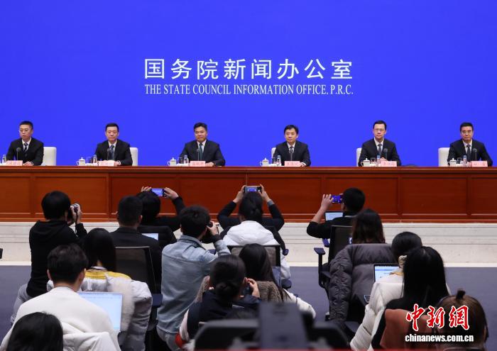 1月6日,中国国务院新闻办公室在北京举行新闻发布会,商务部副部长盛秋平、生态环境部科技与财务司司长王志斌、农业农村部市场与信息化司司长雷刘功、商务部流通业发展司司长李佳路、市场监管总局认证监督管理司司长姚雷介绍推进绿色消费有关情况,并答记者问。中新社记者 杨可佳 摄