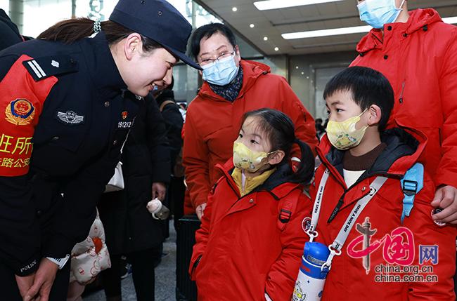 2026年1月1日,在湖北省武汉市武昌站,武汉铁路公安处武昌站派出所民警协助旅客乘车出行。赵军 摄 新华社图片库