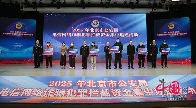 2025年12月9日,北京市公安局举办2025年电信网络诈骗犯罪拦截资金集中返还活动,现场共向30名被骗群众返还涉诈资金3000万余元。北京市公安局刑侦总队供图 新华社图片库
