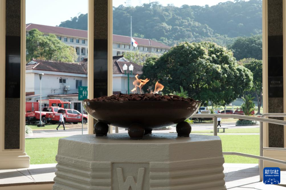 这是1月9日在巴拿马首都巴拿马城拍摄的纪念“护旗运动”的“永恒之火”纪念碑。新华社记者 许咏政 摄