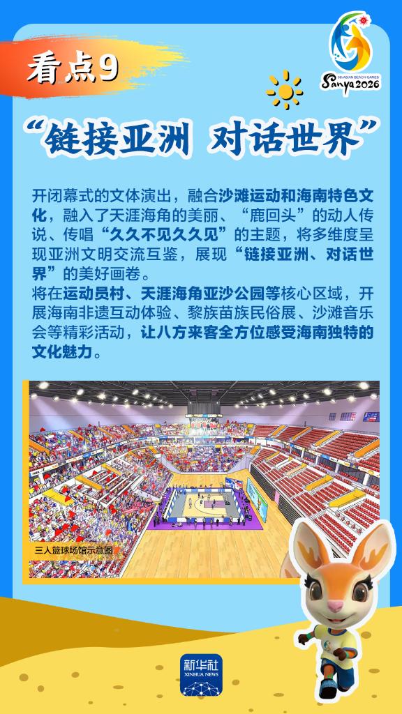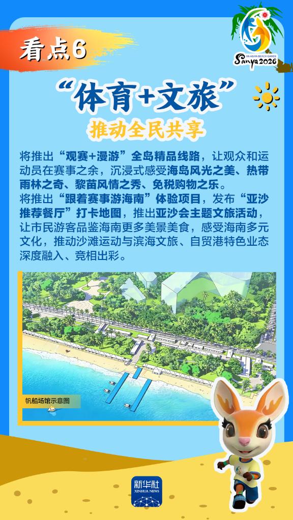 第六届亚洲沙滩运动会(以下简称“亚沙会”)将于2026年4月22日至30日在海南三亚举行,赛事历时9天。作为海南自由贸易港封关运作后迎来的首个国际大型综合性体育盛事,亚沙会都有哪些看点?为何值得期待?国新办12日发布会做了详细介绍,一起来看。