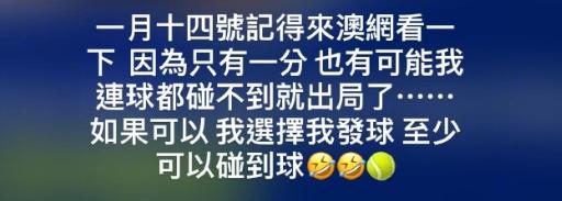 据悉,周杰伦是知名的网球爱好者,不仅经常携家带口出现在网球比赛的现场观战,也经常晒出自己打网球的动态。北京时间本周三(14日)下午16点30分,不妨期待一下他在澳网会有怎样的表现。