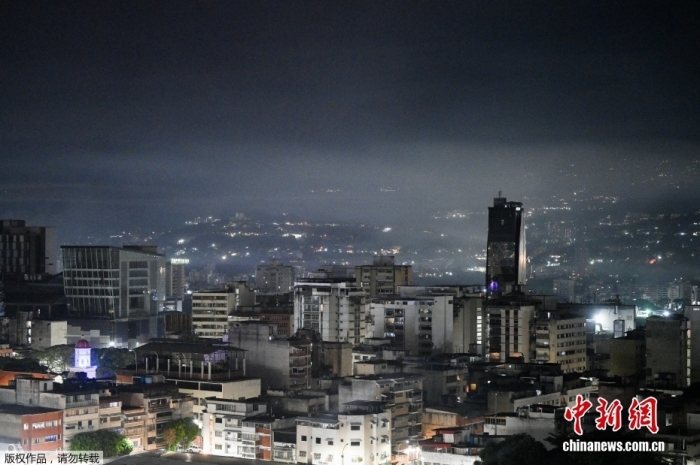 图为当地时间1月3日,发生一系列爆炸后的加拉加斯夜景。