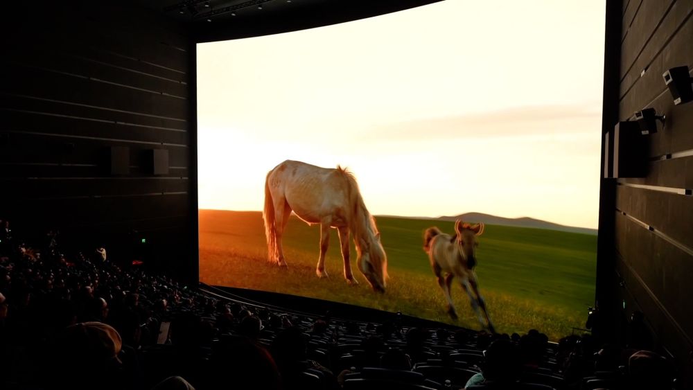近日,全球首部生肖动物巨幕电影《马到功成》在上海科技馆内巨幕影院举行首映。该屏幕融合4K、3D、高帧率等多项技术,同时也应用了中影集团新一代的CLED透声屏方案。