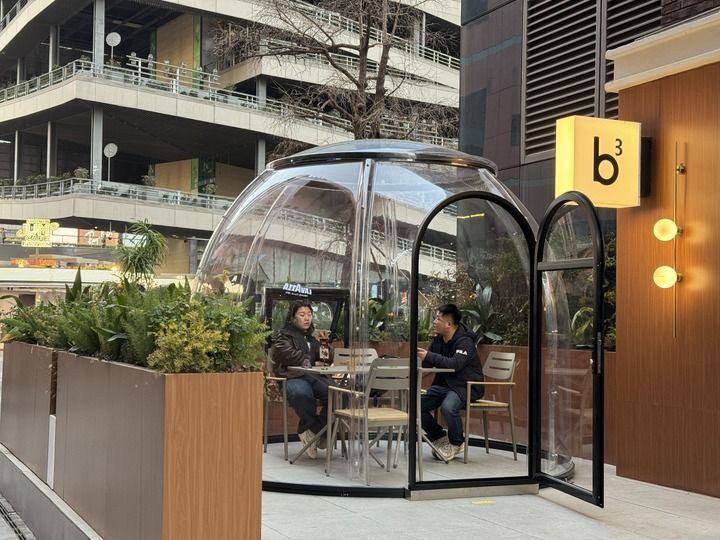 高效的审批,直接转化为商户精细化、创意化运营的底气。必三咖啡美罗城店还专门定制了可拆卸、带安全阀的“庭院星空房”。这个初衷为抵御寒风的设计,因其独特的私密性,意外成为消费者青睐的“街头会客室”,户外区域使用率曾高达80%以上。