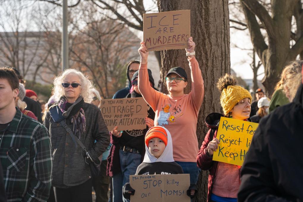 1月11日,在美国首都华盛顿,民众抗议移民与海关执法局暴力执法。新华社发(李源清摄)