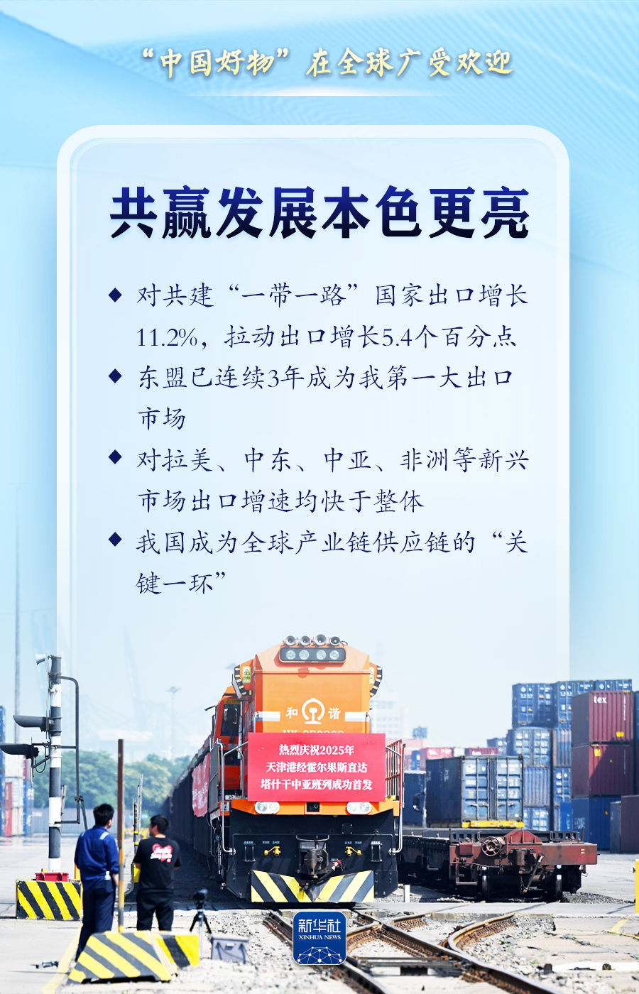 在14日上午国务院新闻办公室举行的新闻发布会上,海关总署介绍,2025年我国出口顶住逆风逆流,规模达到26.99万亿元,同比增长6.1%。量的合理增长,源自质的有效提升。“中国好物”在全球范围内广受欢迎,为保障全球产供链稳定发挥了重要作用,也为全球经贸发展注入了确定性、带来了新机遇。