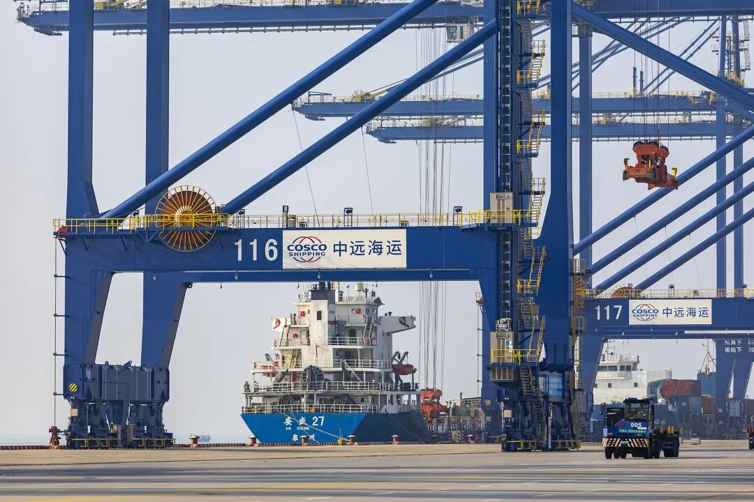在港口扩能方面,通过码头扩建工程新增2个20万吨级、1个15万吨级新泊位,码头整体岸线达1970米,可满足全球最大型集装箱船舶靠泊需求,年设计通过能力正逐步迈向500万标准箱。