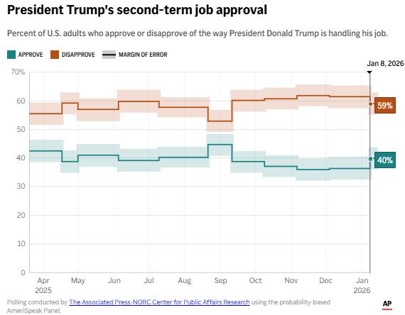 特朗普第二任期执政满意度图表。图片来源:美联社