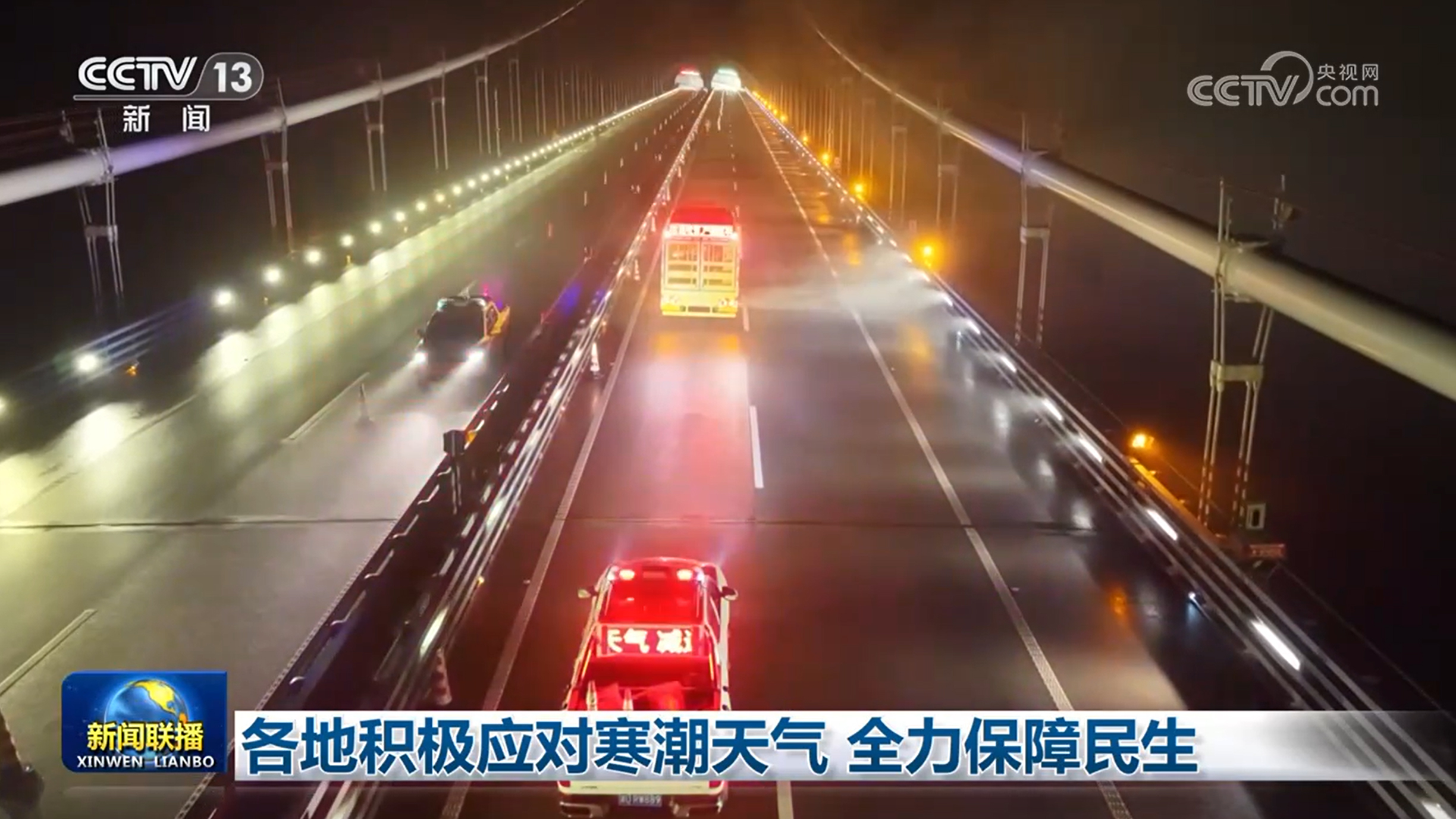 央视网消息(新闻联播):受寒潮影响,我国多地雨雪冰冻天气持续,相关地区积极做好保暖保供、应急抢险等工作,全力做好民生保障。