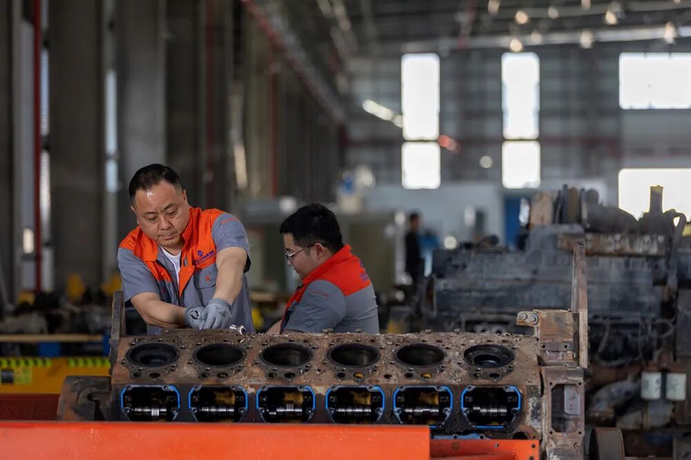 1月13日,中车国际车辆产业(海南)有限公司维修师在工厂维修发动机。(中国外文局欧亚中心记者段崴 摄)
