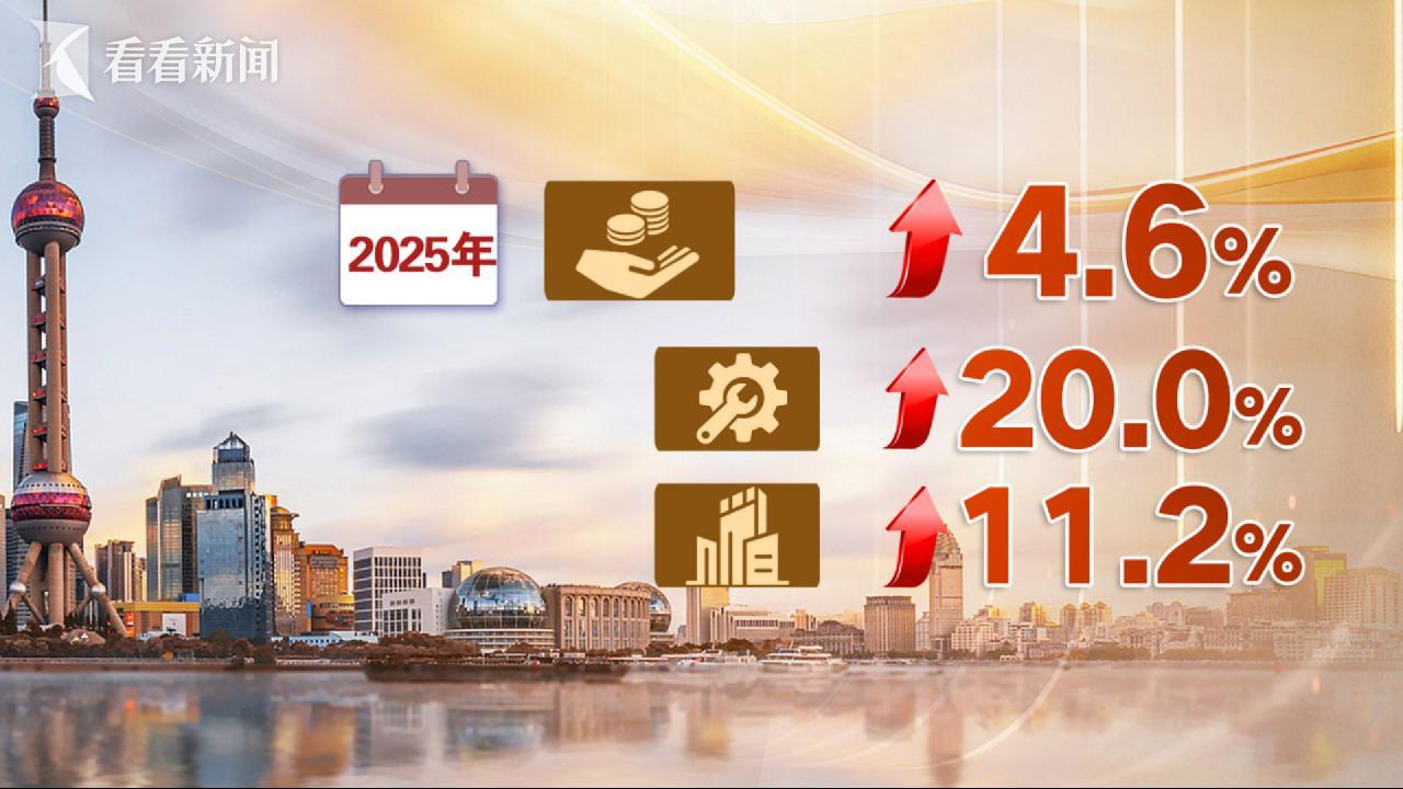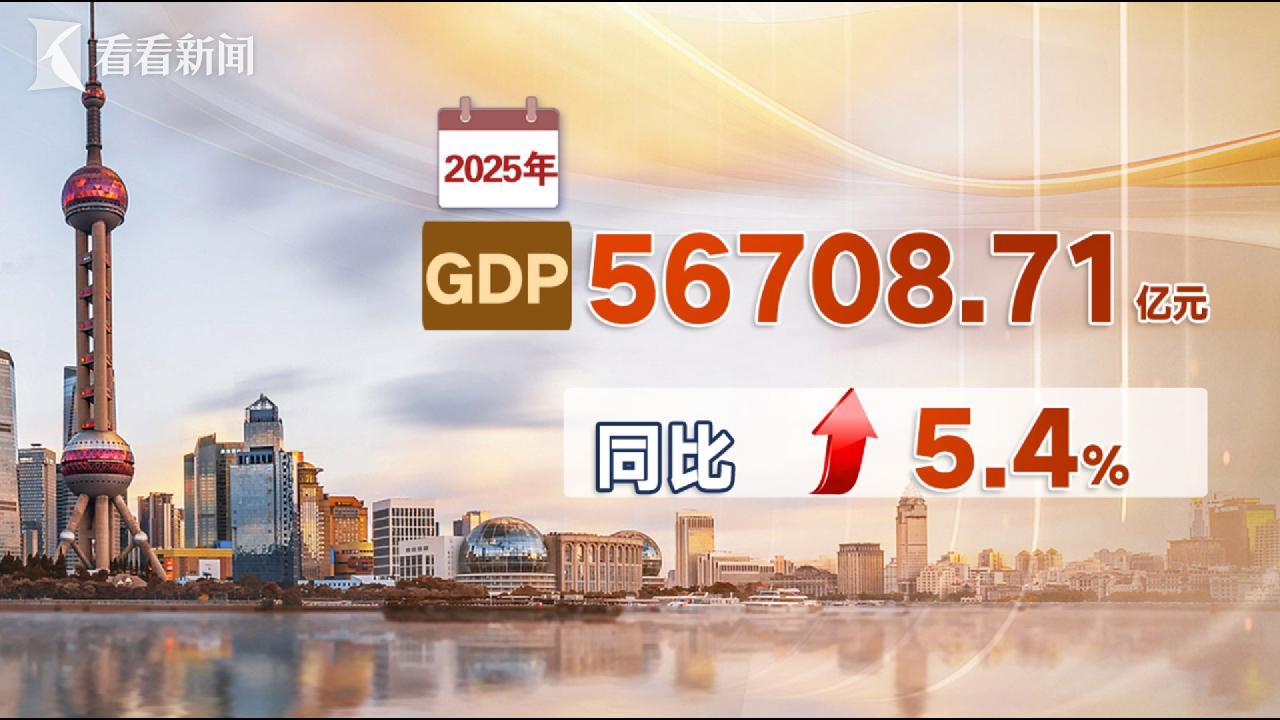 2025年上海经济成绩单今天公布,全市实现地区生产总值超5万6千亿元,同比增长5.4%,高于全国水平,并创下2020年以来上海的最快增速。