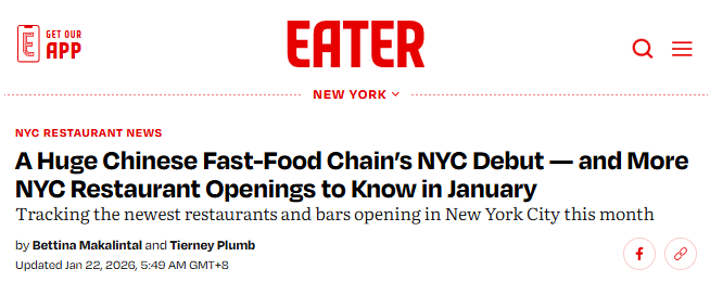 《纽约时报》近期刊发的《准备好,美国:中国餐饮连锁企业即将来袭》一文写道,从芝士奶盖茶到炸鸡三明治,一批拥有数千家中国门店的品牌正扎根美国市场。它们不仅提供一杯饮料,更搭建起连接风味、情感与生活方式的桥梁,在全球消费图景中勾勒出鲜明的东方印记。