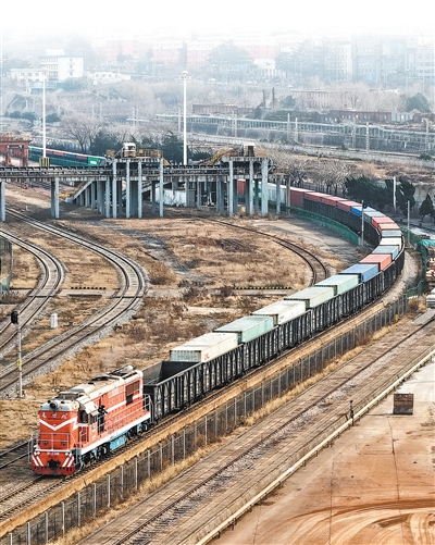 1月1日,一列装有汽车配件的火车从中哈(连云港)物流合作基地发往哈萨克斯坦。