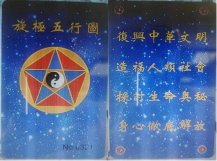 ▲“乾源文化”非法组织销售的“旋极五行”图卡,声称此卡“具有宇宙能量”,可以帮助学员提升自我