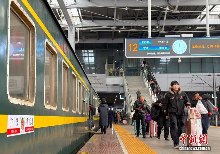 中新网宁波1月27日电 (张斌 骆泽明)27日,随着一声汽笛长鸣,2026年春运长三角首趟临时旅客列车K1248次从浙江宁波站缓缓驶出,满载300余名旅客向着重庆北站进发。这趟提前6天开行的临客,拉开了长三角铁路春运大幕,为急于返乡的旅客开辟了温暖通道。