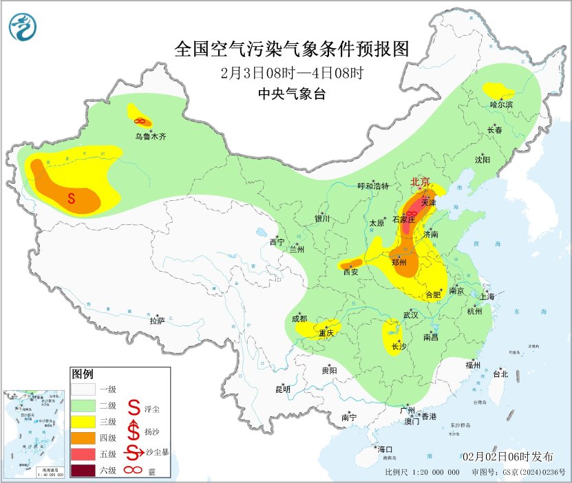 中国网2月2日讯 据中央气象台消息,2日至4日,华北中南部、黄淮中西部、江淮中西部、江汉等地的部分地区有轻至中度霾,局地重度霾。5日起,受冷空气影响,上述地区霾天气自北向南逐渐减弱消散。