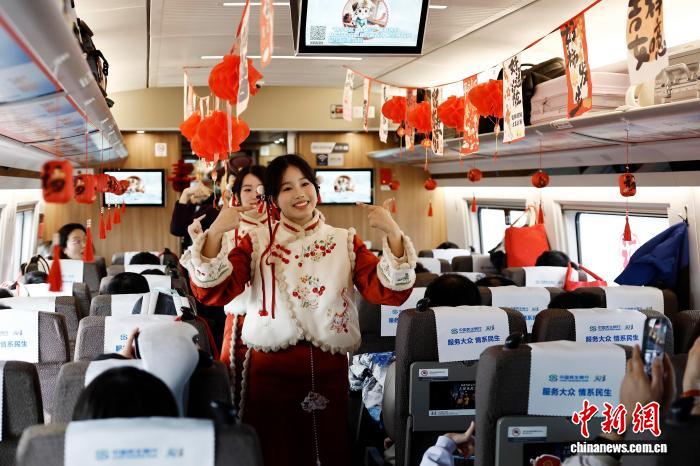 值得一提的是,在当日中国铁路上海局集团有限公司上海客运段担当的G8、G10、G12、G14次京沪高铁列车上,旅客还能收到承载着祝福的“新春福袋”,传递着“一路平安、新春快乐”的诚挚祝愿。(完)