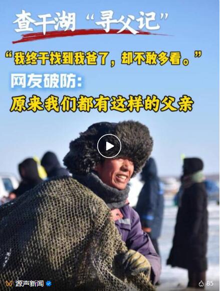直到我在手机上偶然刷到一条短视频——“我终于找到我爸了,却不敢多看。”配图是一张视频截图:冰天雪地中,一位身着厚重棉衣的渔工正吃力地拉网,头发冒着热气,衣裤已被打湿。