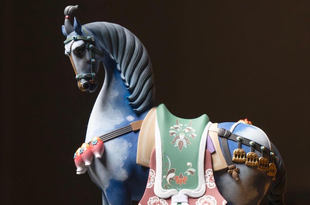 “汗血马”昂首挺立、“青骢马”姿态昂扬、“绀宝马”造型优雅……新春将至,天津泥人张彩塑工作室推出系列作品,共七款,以紫土、铜塑形,结合彩绘技艺,兼具写实的精微与写意的神韵。