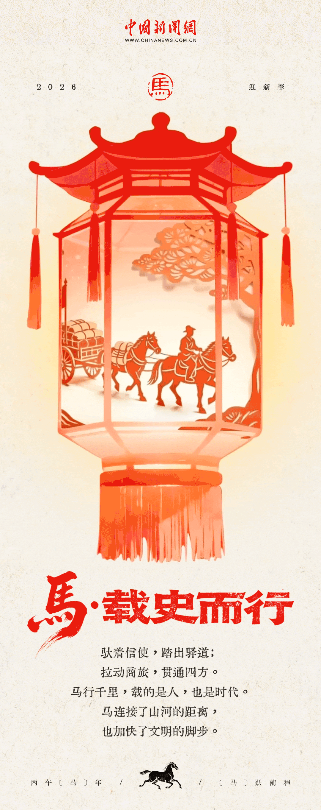 从甲骨上奔腾的形影,到诗词中飞扬的蹄声;从青铜器里凝固的千年神韵,到走马灯上转不尽的吉祥轮回,马,始终陪伴在我们生活的烟火之中。眼看2026丙午马年就要到啦,还记得小时候盯着走马灯,看那纸马一圈圈地跑,仿佛能带走旧岁,转来新春吗?这回,让我们一起循着那盏灯里的光影、书页间的墨香、老话中的寓意,重新感受那份属于马的昂扬、踏实与祥瑞。