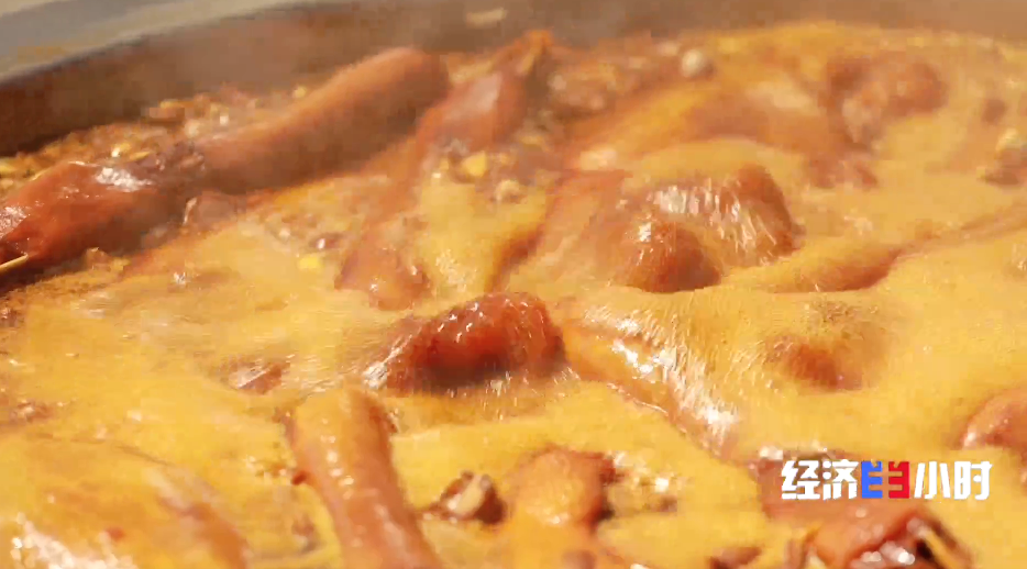 大火卤煮,长达一个多小时的沸腾,使鹅的皮下脂肪与卤汤充分混合,卤汤也渗入厚实的鹅肉之中。