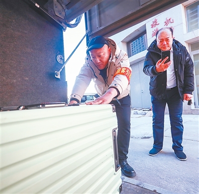 北京西站,铁路工作人员查看专用宠物运输箱。为进一步提升春运便民利民服务能力,中铁快运扩大高铁宠物托运服务试点范围,提升旅客出行体验。