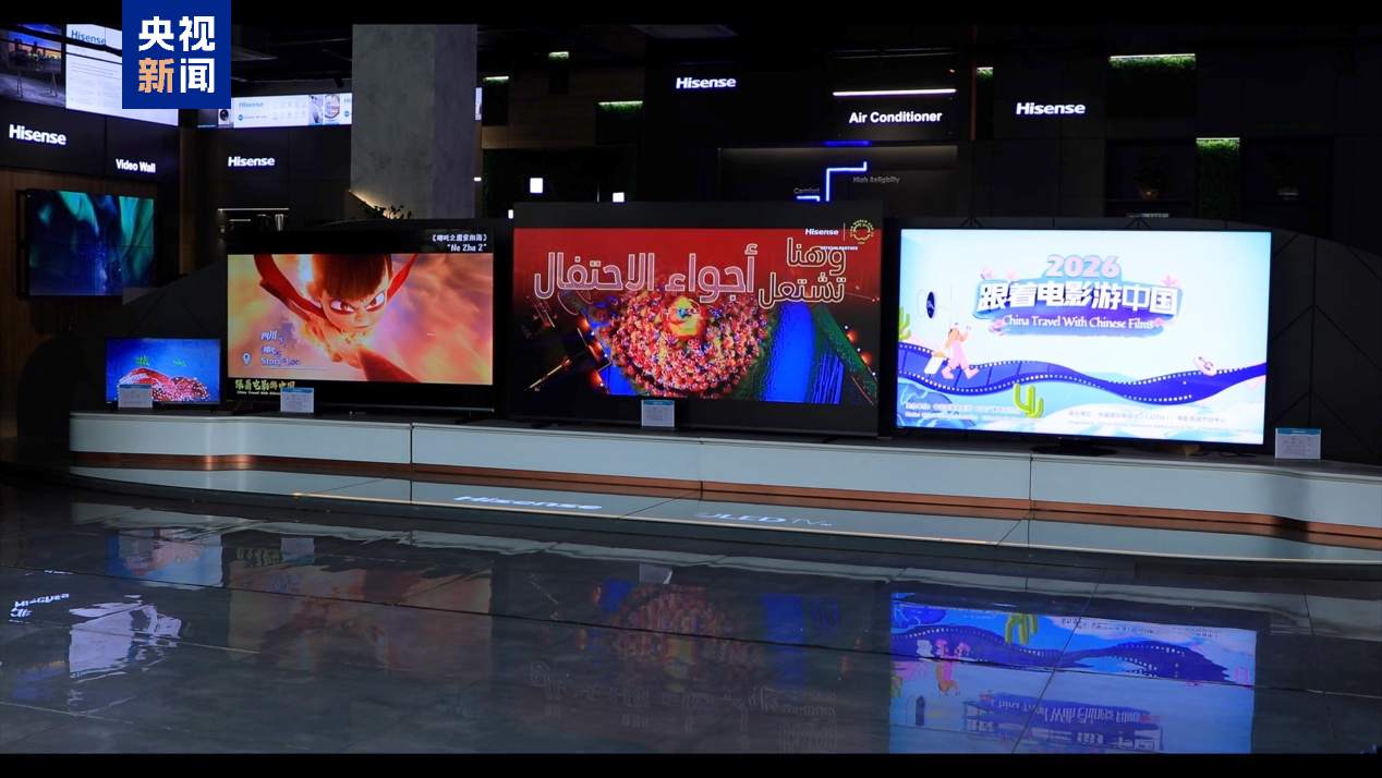 在伊拉克首都巴格达,总台春晚宣传片亮相市中心近200块室内外屏幕。中国文化景观与文旅资源交织呈现,在现代商业空间中构建起跨越地域与文明的文化交流场景。