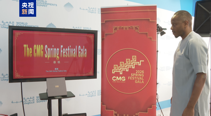 2月3日,2026年世界政府峰会在阿联酋迪拜召开。中央广播电视总台中东总站作为官方媒体伙伴受邀参加峰会,并在现场用总台春晚宣传片及总台春晚文创点亮会场荧幕,为峰会送上新春祝福。