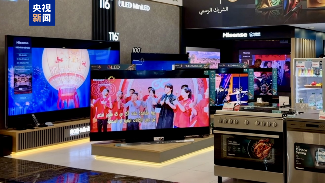 在沙特市中心核心商业街区,总台春晚宣传片通过多块临街商铺屏幕滚动播出,让当地民众在日常生活中打开一扇通往中国的文化之窗。