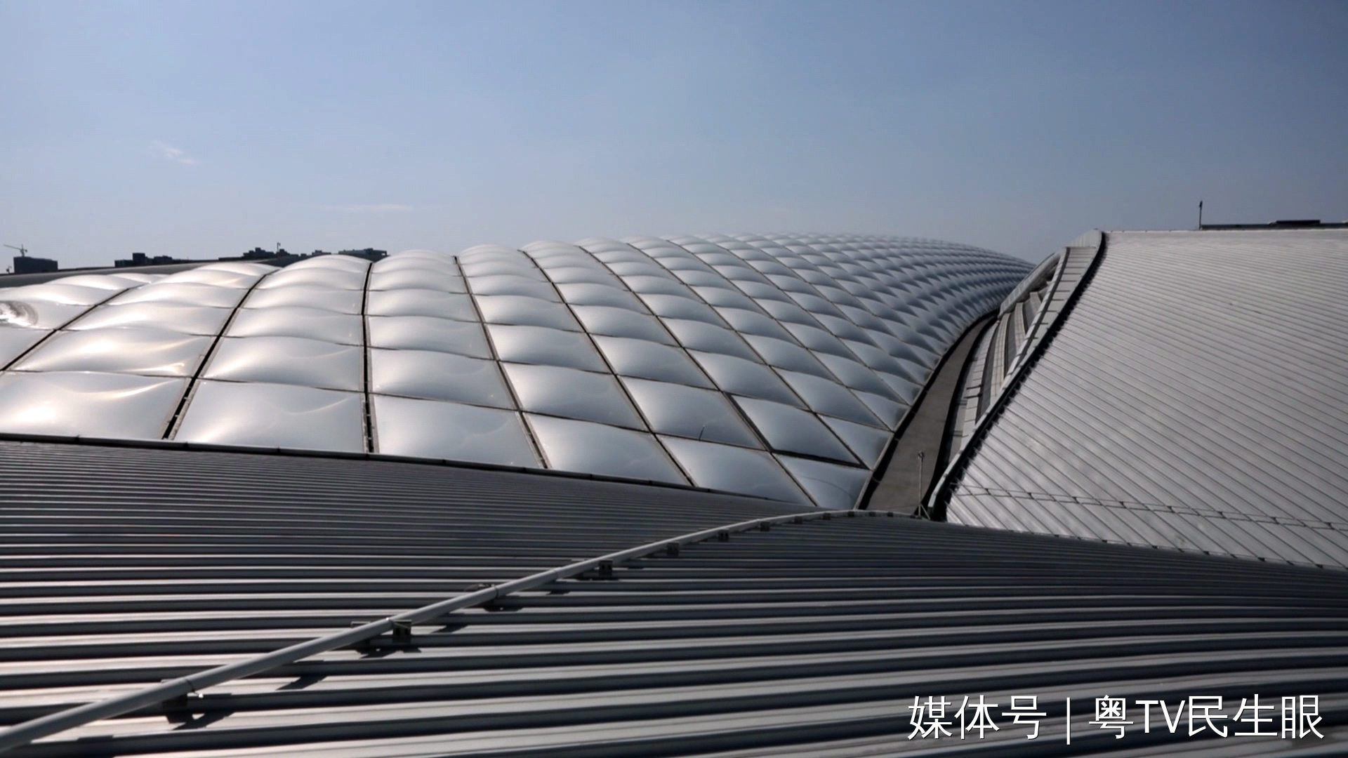 屋面上的最高点距离地面52米,最低点47米,有些地方踩下去,甚至是软的,人很容易重心不稳,黄荣彬说,2024年刚来到广州南站时,相比于害怕高空作业,更多的是好奇。他说刚上到屋面时,只感受到一个字——美!充气膜在阳光的照射下,感觉就像一朵棉花一样。