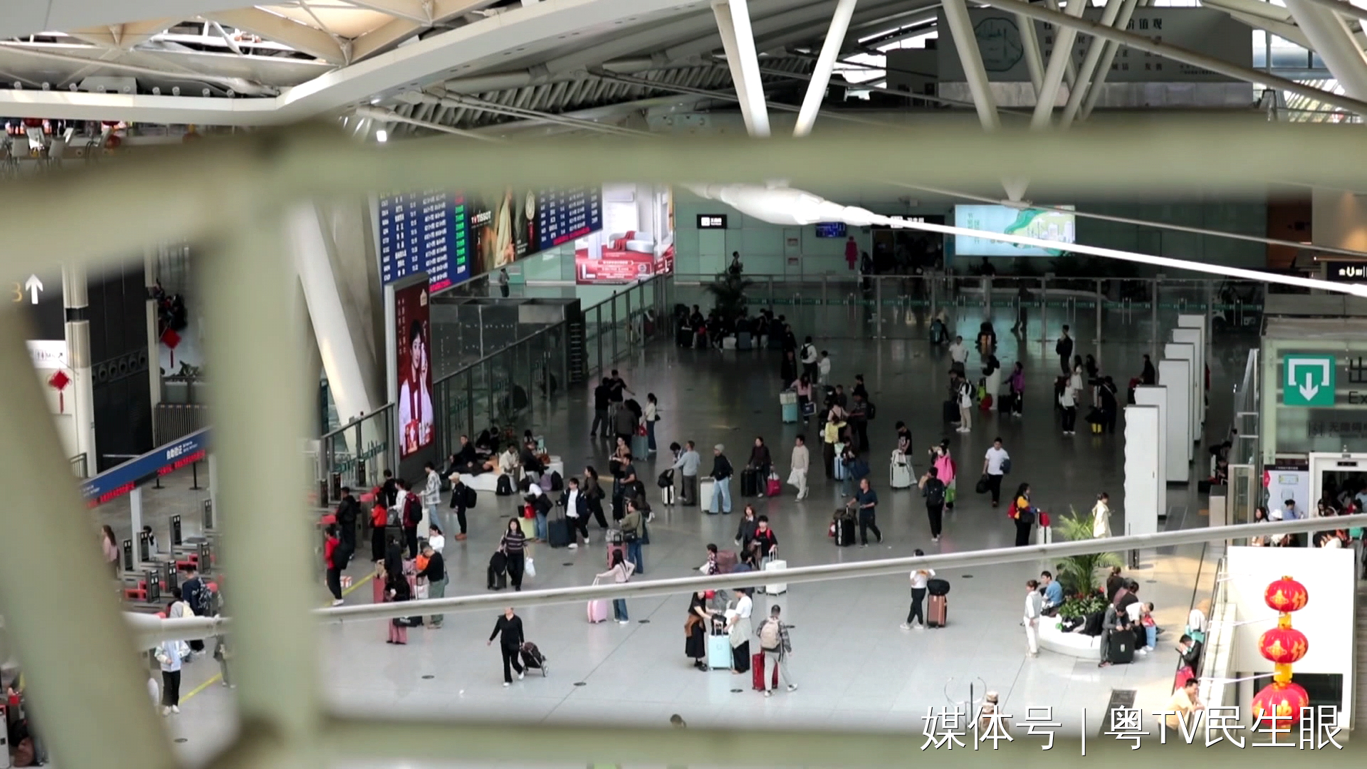 广州南站整个屋面将近11.2万平米,相当于16个标准足球场。此刻,下面的候车厅内人潮涌动,广州南房建工区工长黄荣彬一行四人的身影,在脚下庞然巨物的映衬下,倒显得有些单薄。