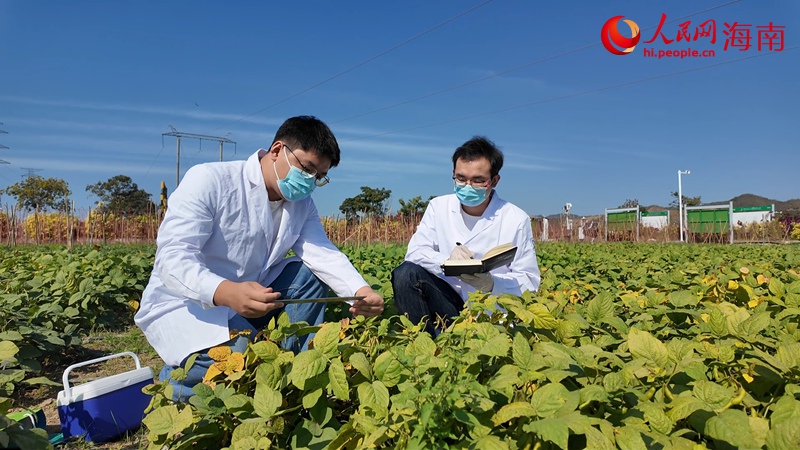 海南大学三亚南繁研究院副院长夏志强在工作。人民网记者 符武平摄