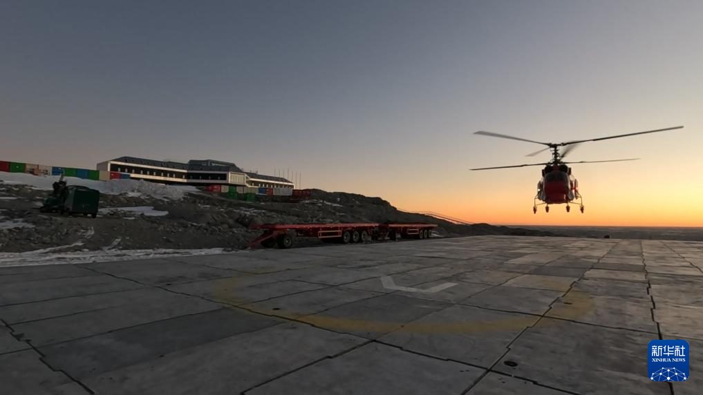 2月21日,69名秦岭站度夏队员分批乘坐直升飞机离开秦岭站、登上“雪龙”号。图为直升飞机从秦岭站起飞。新华社发(中国第42次南极考察队供图)